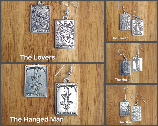 Silver plated charms on hypoallergenic ear hooks.
